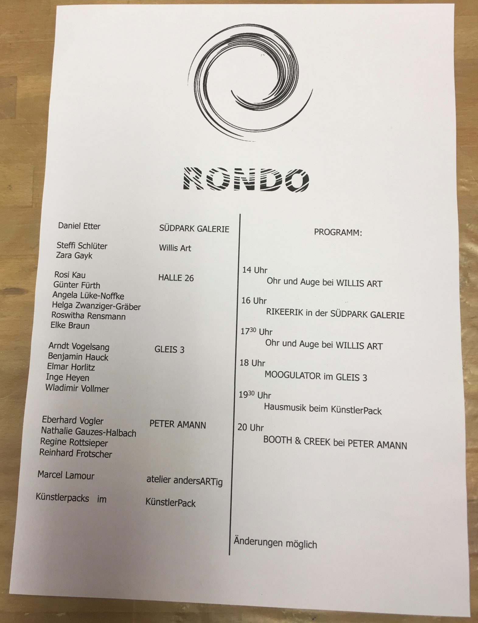 Es kann passieren, dass kurzfristig ein anderes Atelier genutzt wird, aber du wirst es finden – es ist alles eine Zeile von verschiedenen Ateliers. Sei einfach da…
